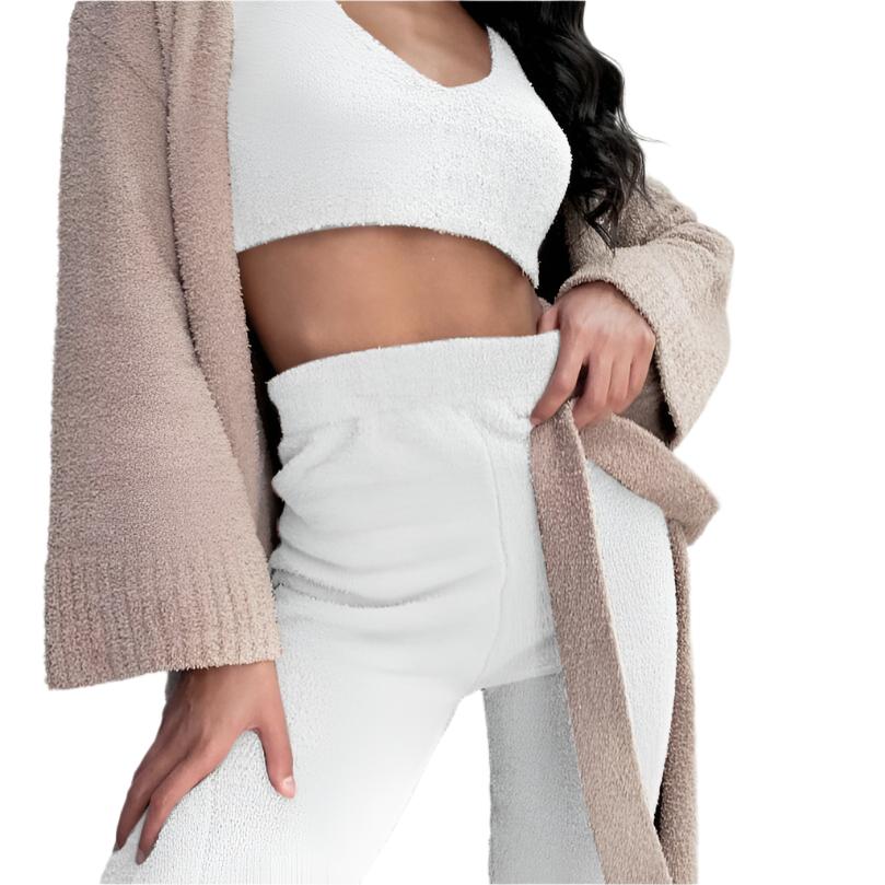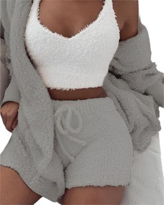 3pcs Womens Clothing Long Sleeve Crop Tank Top And Drawstring Shorts Pajama Set