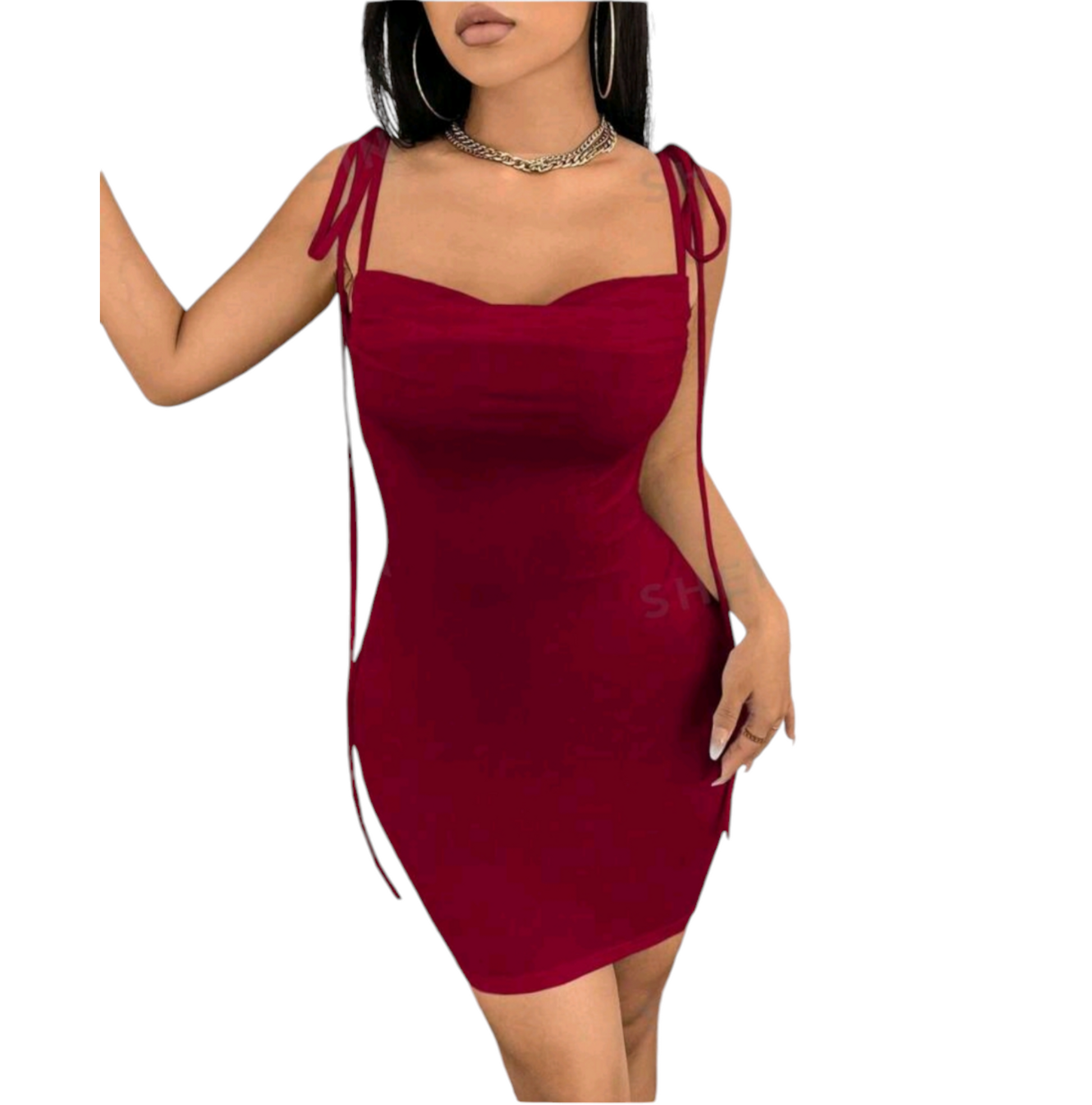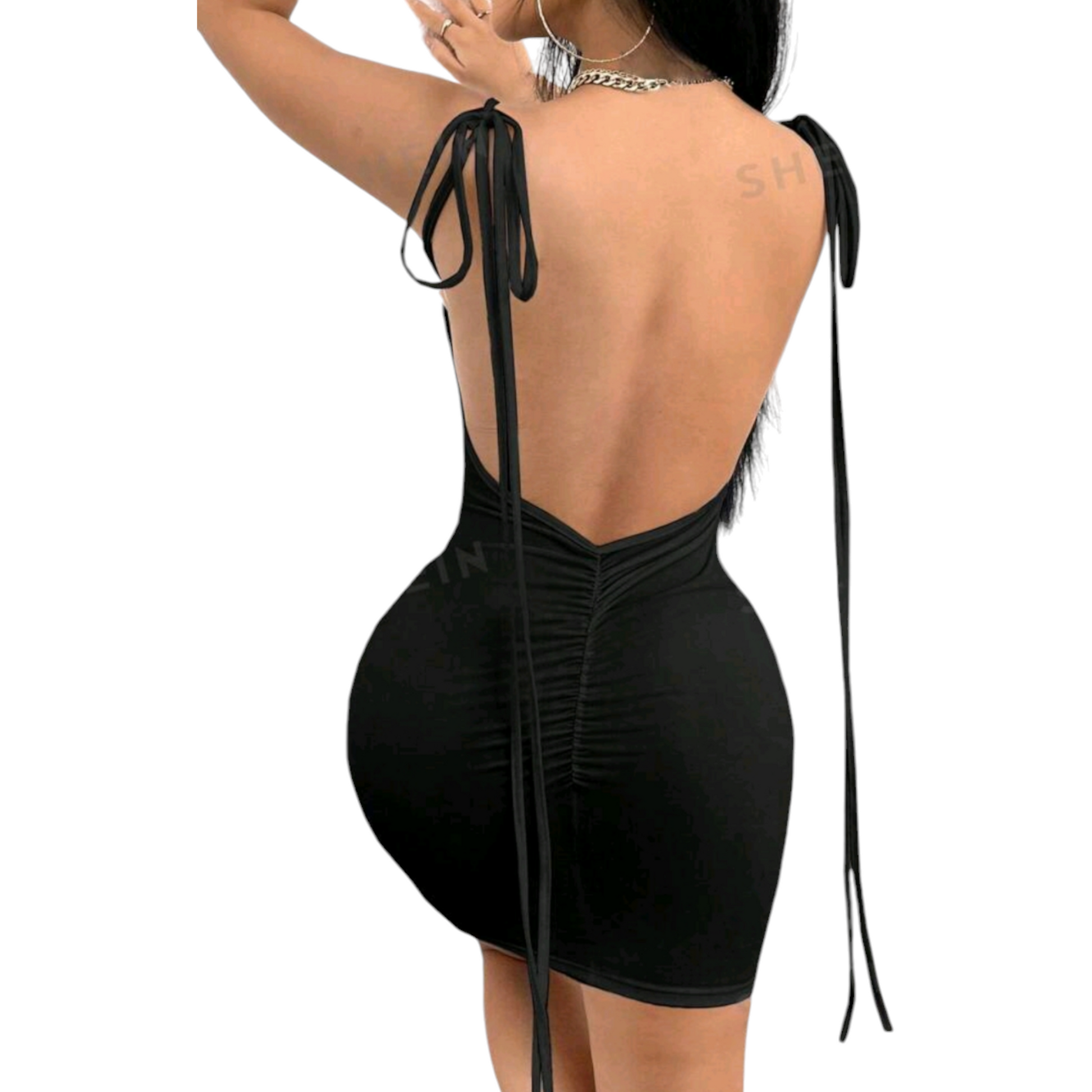 *Product Name:* BAE Tie Shoulder Drawstring Backless Ruched Tie Shoulder Backless Cami Bodycon Dress