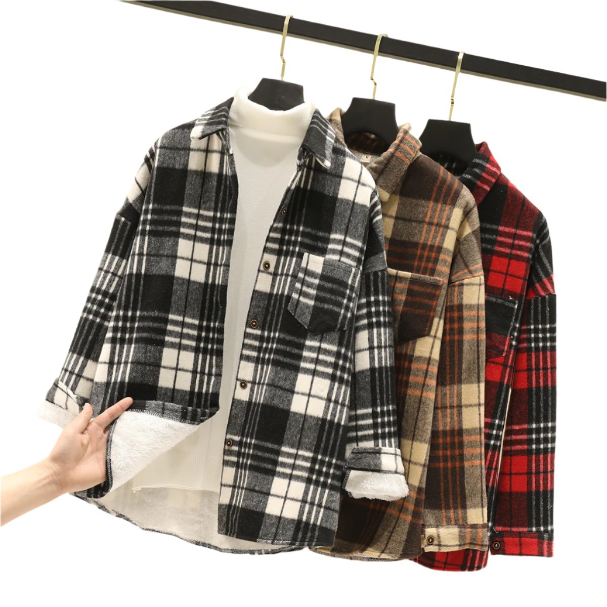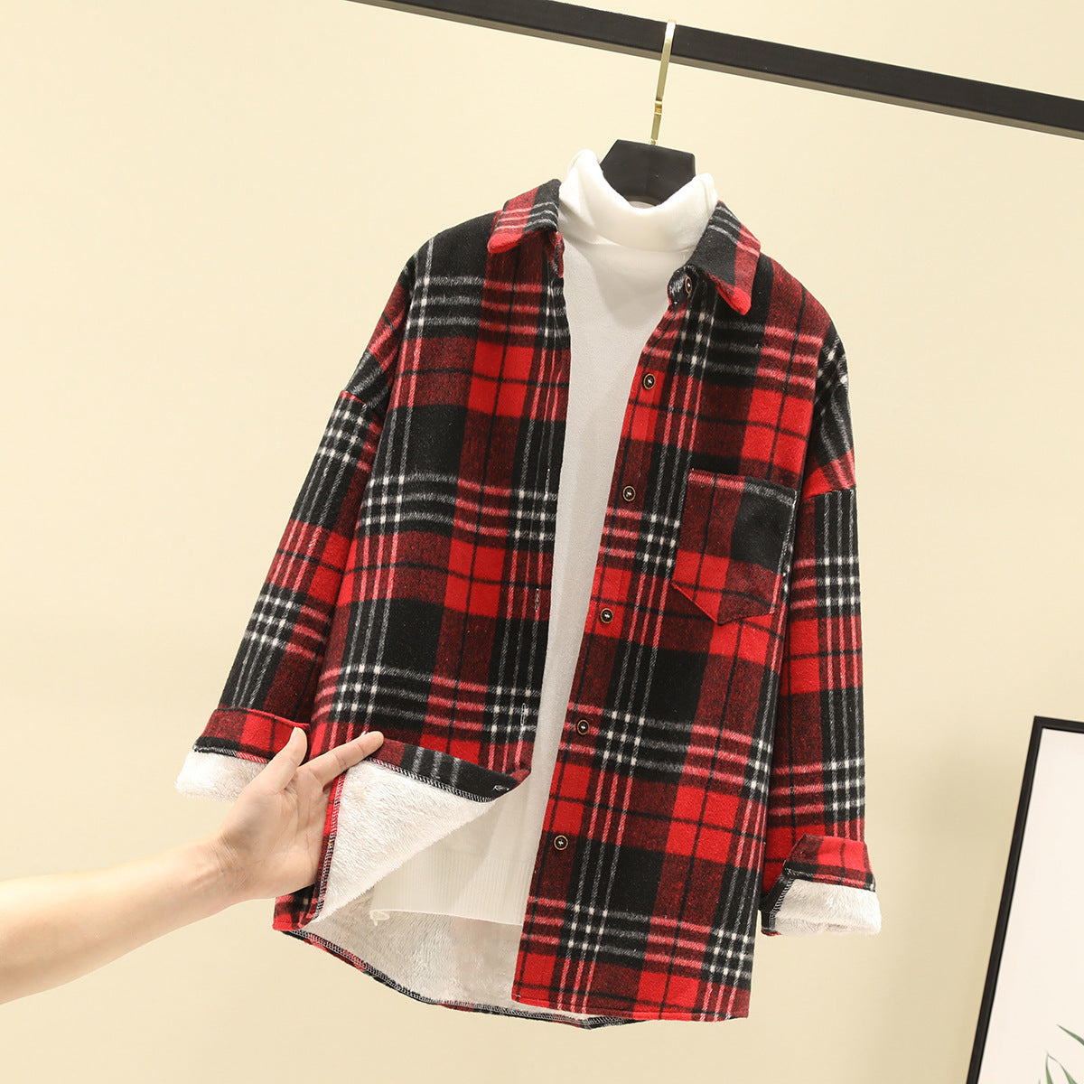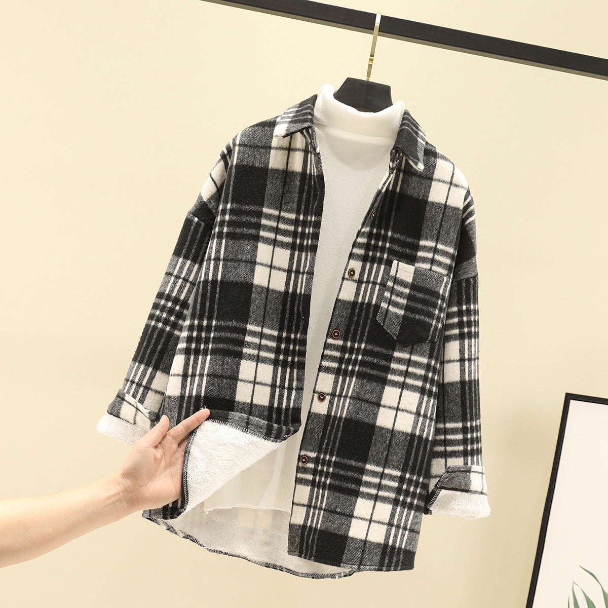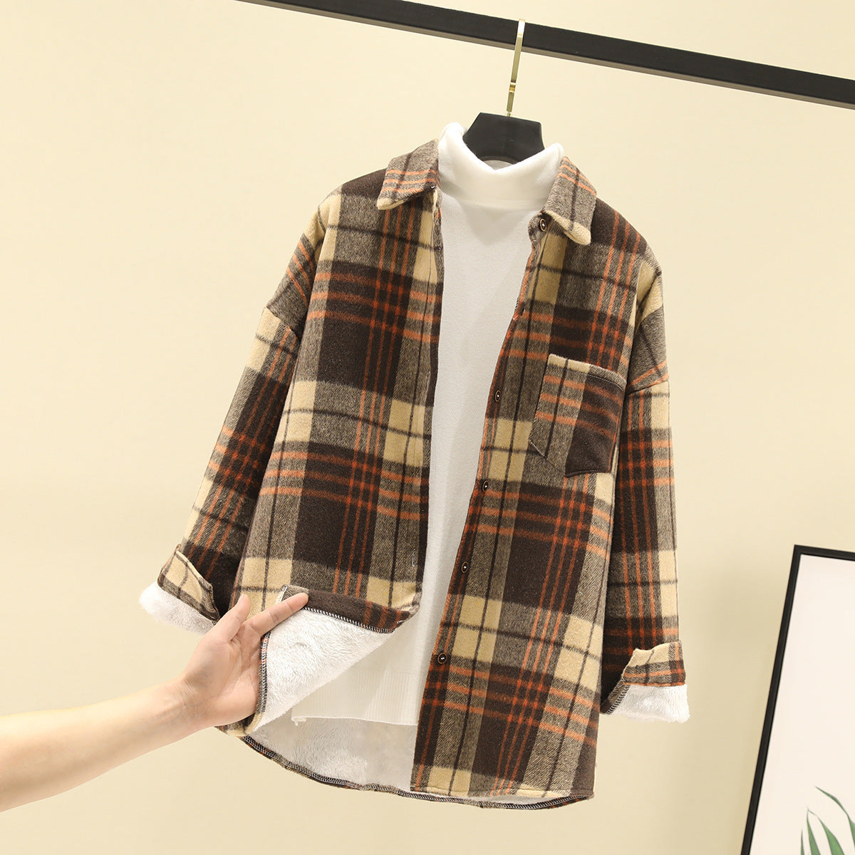 Japanese Woolen Cardigan Coat Fleece Plaid Shirt Women