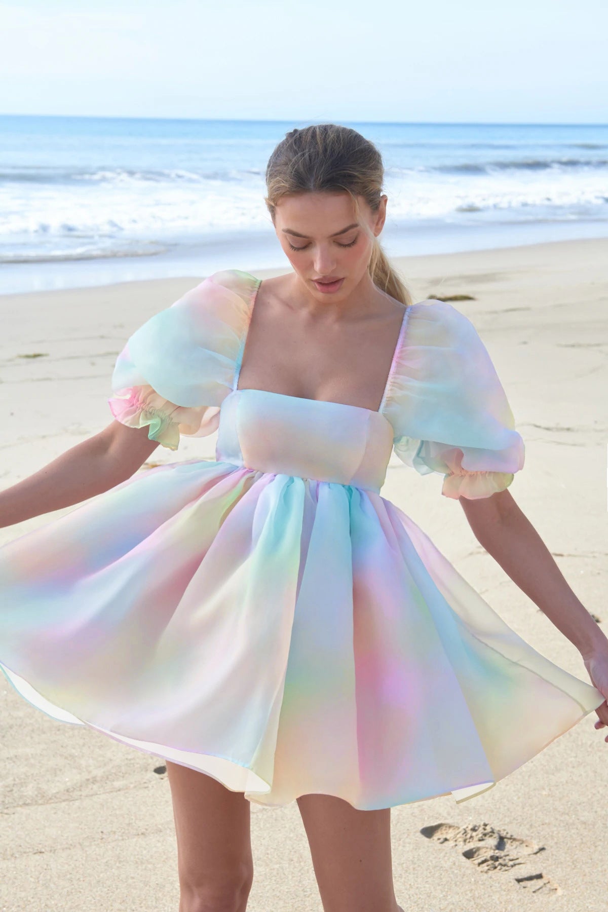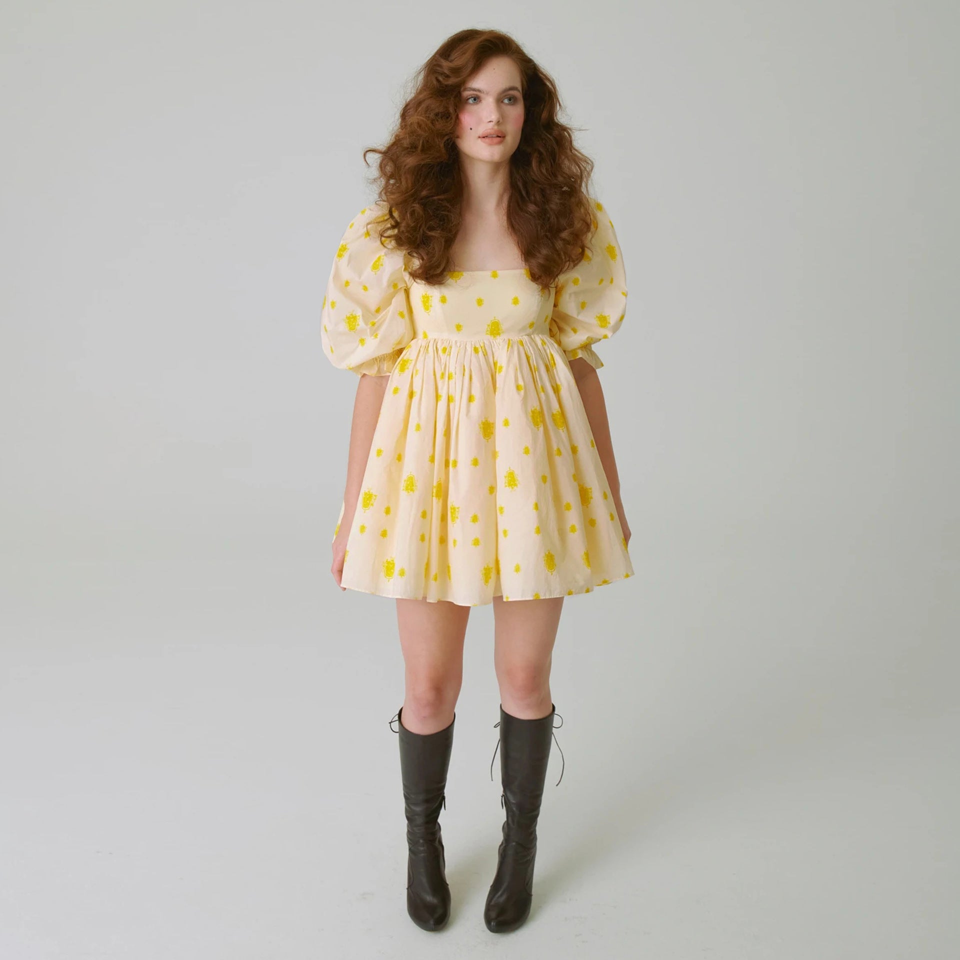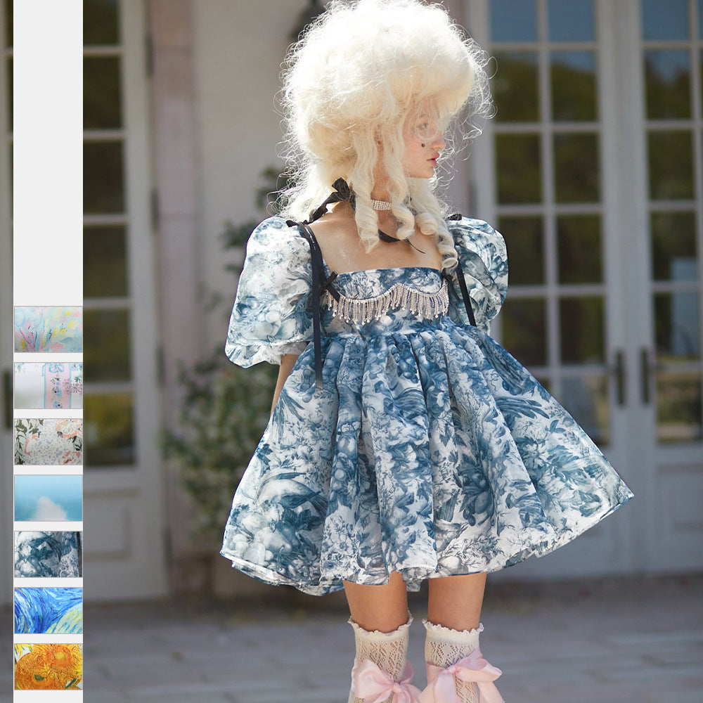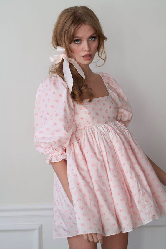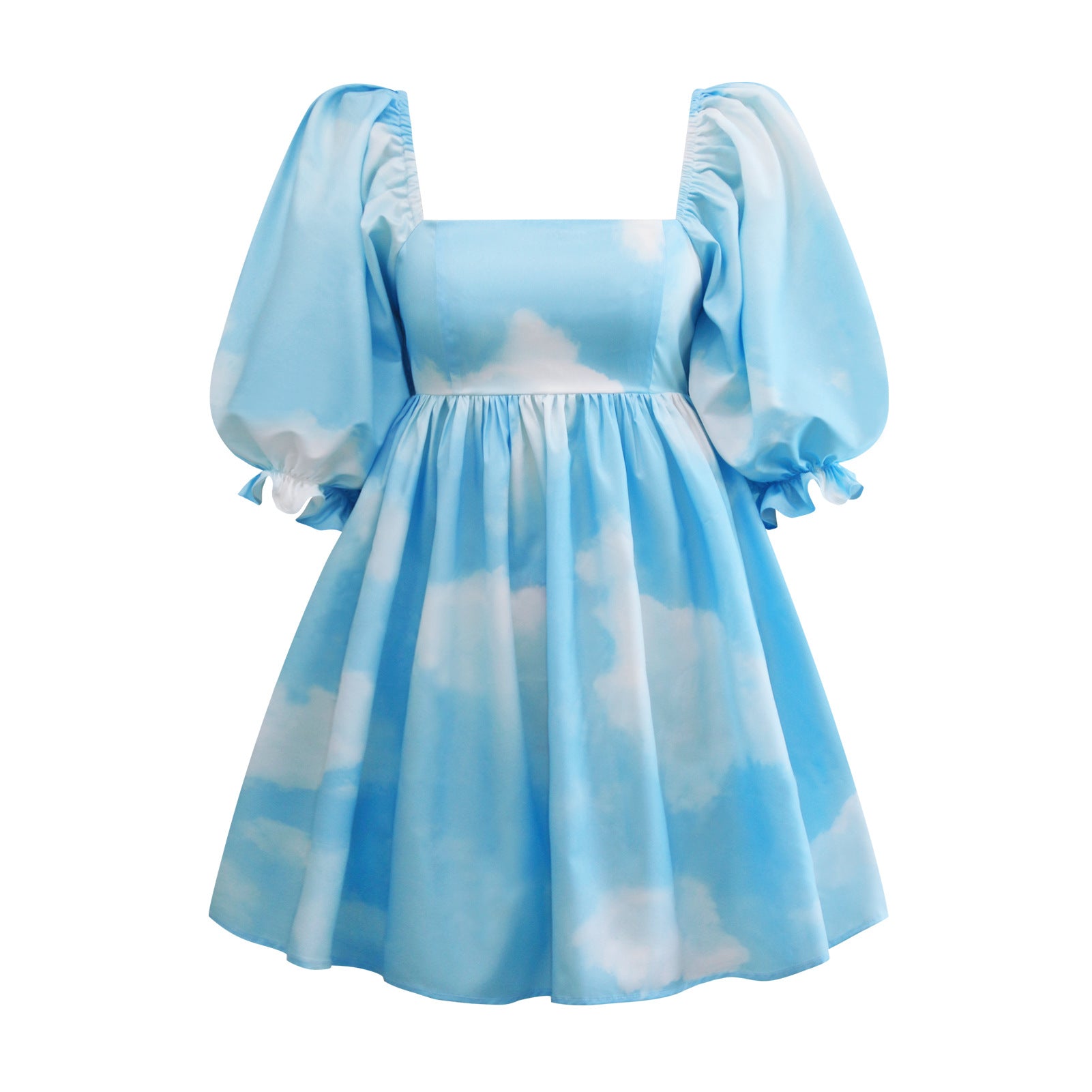 New Women's Printed French Square Neck Bubble